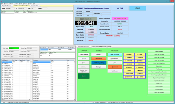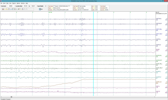 RCT is a powerful graphical ROAMES Client tool for real-time and offline display and analysis of ROAMES datasets. Functionality includes live and offline historical comparison charts, data validation, data trending, track design analysis, defect analysis, data reporting, plus much more.
