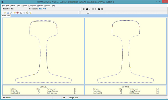 RPA provides live and offline analysis and visualisation of rail profile data. Use RPA to quickly locate and view a rail profile of interest, automatically align the profile to a standard rail template, analyse and display related profile data, perform exceedance analysis on selected profile data parameters, and report or export the profile and defect data.
